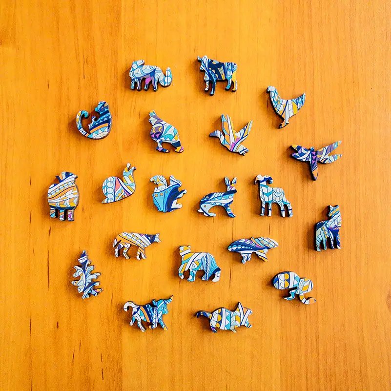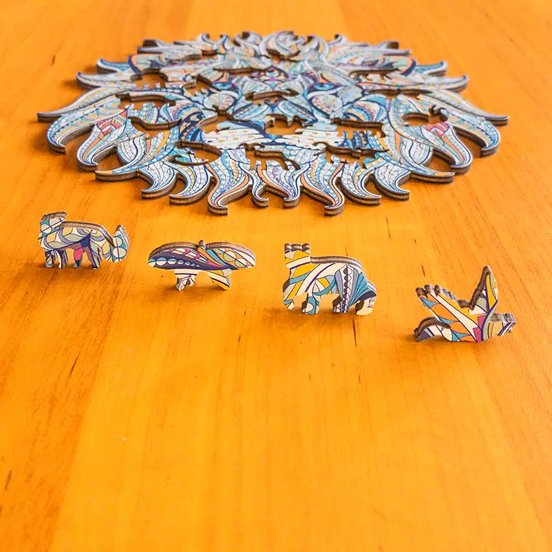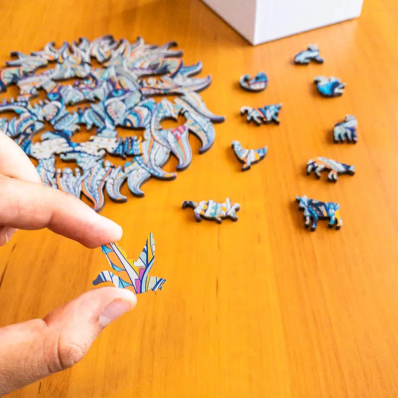 Az M-es méretű fa puzzle-jeink nagyjából olyan összetettek, mint egy 500 darabos hagyományos puzzle, míg az L-es puzzle-jeink nagyjából olyan összetettek, mint egy 1.000 darabos hagyományos puzzle, így nem kell aggódnod, nem leszel egyhamar készen a kirakóval.